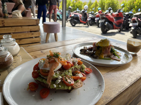 Das Crate ist ein fester Bestandteil von Canggu. Bei vielen Reisenenden ist ein Besuch im Crate Pflicht. Das Essen ist wirklich sehr gut und die Portionen sind großzügig, Preis-Leistung ist hervorragend. Durch die Bekanntheit des Cafés, ist hier immer viel los und deshalb eignet sich das Crate nicht zum arbeiten. Es gibt regelmäßig Live-Musik und DJ’s. Wir empfehlen besonders das Veto Toast.